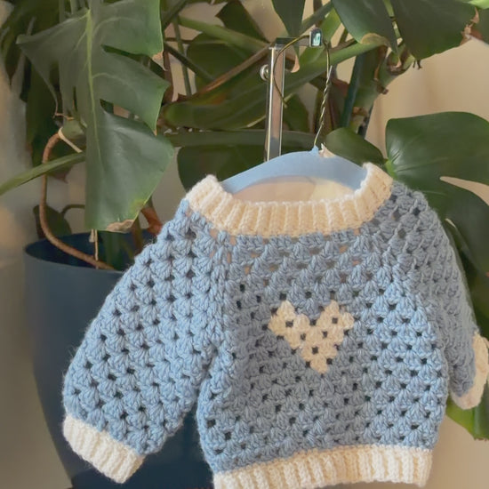 Handmade Merino Blend Crochet Baby Sweater/Jumper with Heart Motif